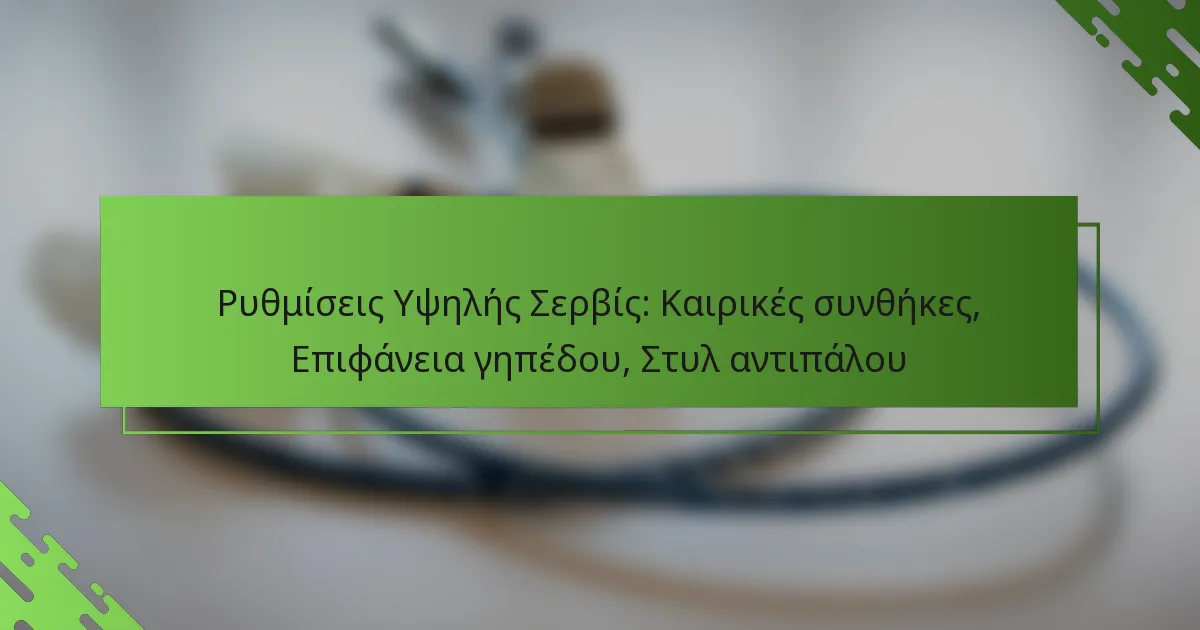 Ρυθμίσεις Υψηλής Σερβίς: Καιρικές συνθήκες, Επιφάνεια γηπέδου, Στυλ αντιπάλου